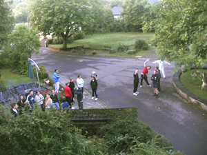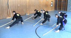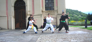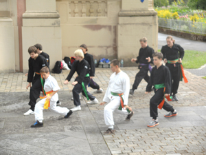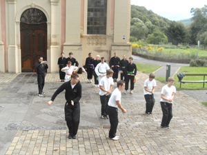 Endlich kein Regen. Training im Klosterhof: