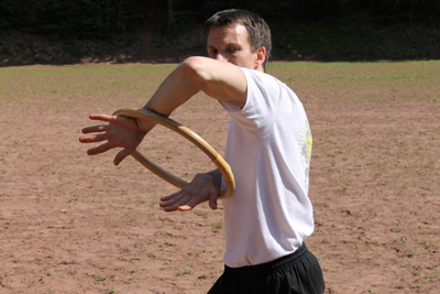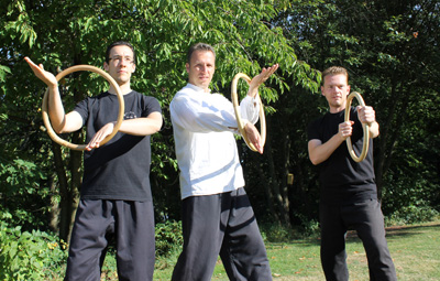 Die Seminarleiter Thomas, Christoph und Christian mit den Rattanringen